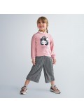 Hanorac cu maneca lunga pentru fetita. Guler rotund cu volanas. Inchidere prin capse pe partea posterioara pentru a facilita punerea. Material moale din bumbac elastic. Elemente decorative: broderii, paiete reversibile. Din motive de siguranta, marimile mici (2-3 ani) pot suferi unele variatii in ceea ce priveste elementele decorative utilizate la proiectare.