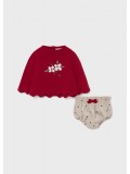Set pentru nou-nascut fata de la 0 la 18 Luni compus din doua piese: un pulover si o pereche de pantaloni scurti.