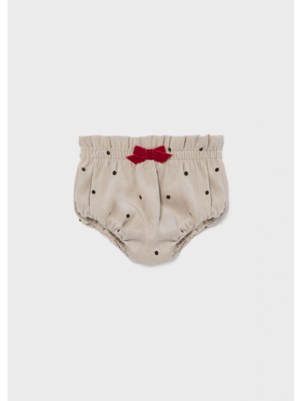 Pantaloni pentru nou-nascut fata de la 0 la 18 Luni scurti tip chilotei, exclusivi in colectia noastra pentru nou-nascuti. Elastic in talie pentru o mai buna ajustare. Elemente decorative: fundita. Imprimeu cu buline.